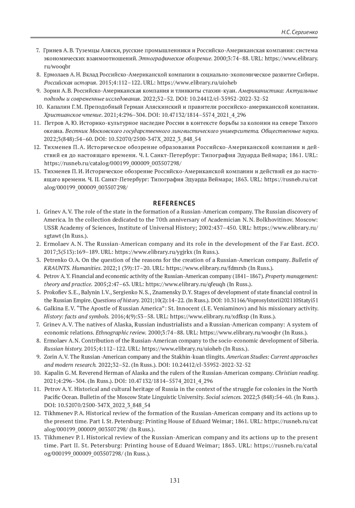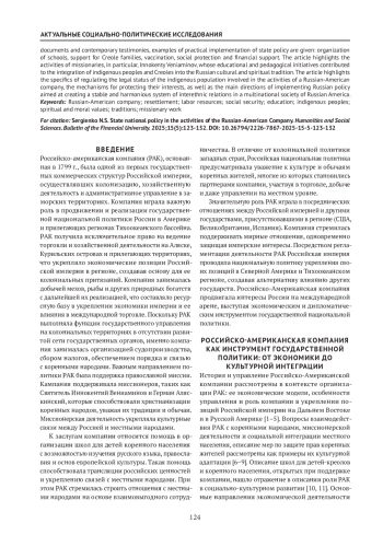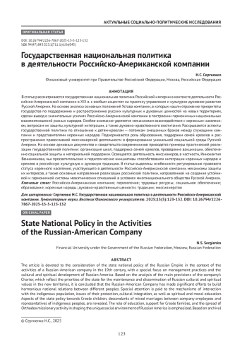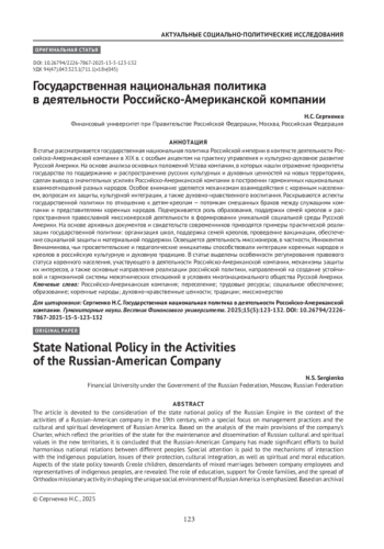 СЕРГИЕНКО Н. С. ГОСУДАРСТВЕННАЯ НАЦИОНАЛЬНАЯ ПОЛИТИКА В ДЕЯТЕЛЬНОСТИ РОССИЙСКО-АМЕРИКАНСКОЙ КОМПАНИИ // ГУМАНИТАРНЫЕ НАУКИ. ВЕСТНИК ФИНАНСОВОГО УНИВЕРСИТЕТА. 2025. ТОМ 15, № 5