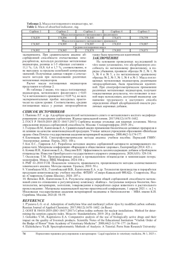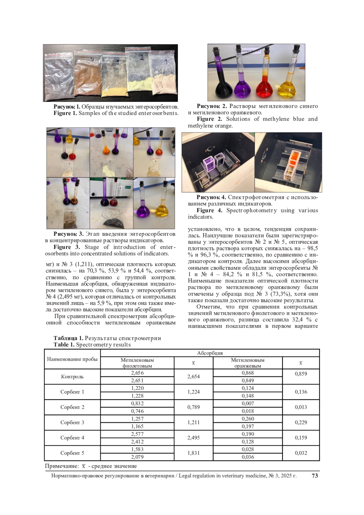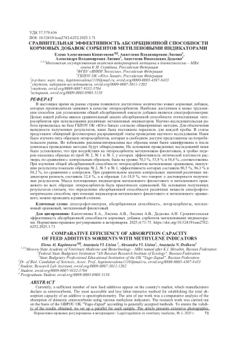 Статья: СРАВНИТЕЛЬНАЯ ЭФФЕКТИВНОСТЬ АБСОРБЦИОННОЙ СПОСОБНОСТИ КОРМОВЫХ ДОБАВОК СОРБЕНТОВ МЕТИЛЕНОВЫМИ ИНДИКАТОРАМИ (2025)