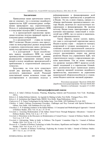 Статья: ОСОБЕННОСТИ ПОЛИТИКИ ПРАВИТЕЛЬСТВА ИНДИИ В СФЕРЕ ЭКСПОРТА ВООРУЖЕНИЙ В КОНТЕКСТЕ РЕФОРМИРОВАНИЯ ВОЕННО-ПРОМЫШЛЕННОГО КОМПЛЕКСА (2025)