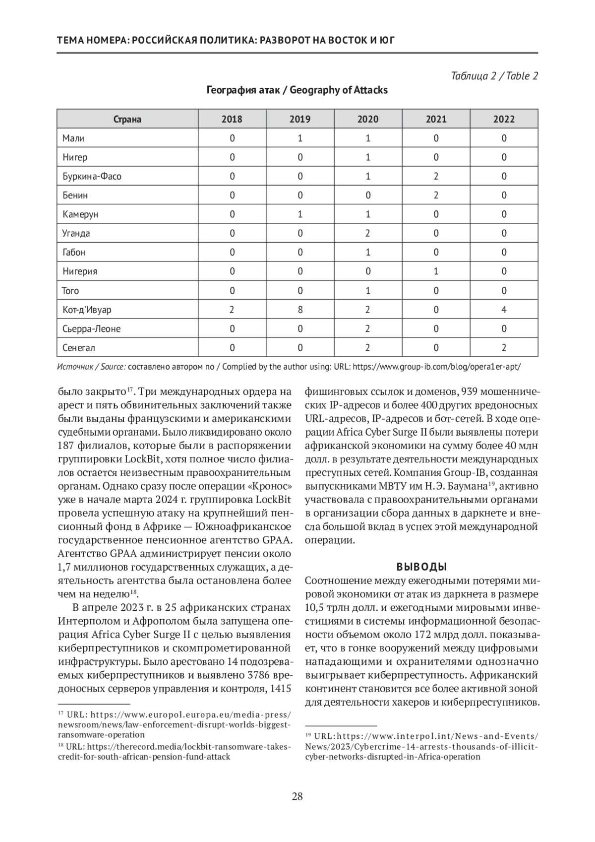 Ключевые фразы: ДАРКНЕТ, кибербезопасность, киберпреступность, африка, нелегальная торговля, ДЕЗИНФОРМАЦИЯ, эволюция, международное сотрудничество, информационная безопасность, российско-африканское партнерство, устойчивость