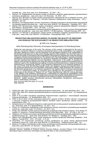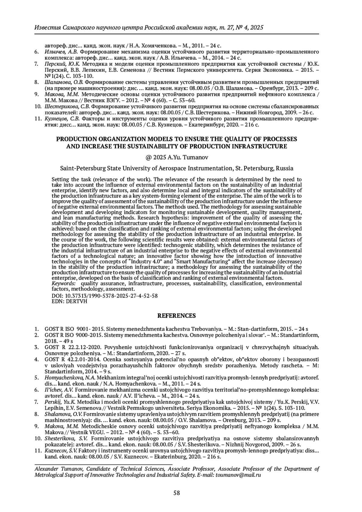 11. Кузнецов, С.В. Факторы и инструменты оценки уровня устойчивого развития промышленного предприятия: дисс.. канд. экон. наук: 08.00.05 / С.В. Кузнецов. - Екатеринбург, 2020. - 216 с. EDN: JCPSDA