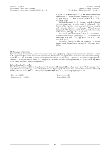 Журнал: КУЛЬТУРНО-ИСТОРИЧЕСКАЯ ПСИХОЛОГИЯ
