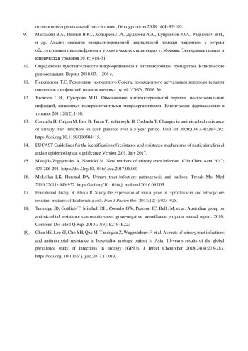 19. Choe HS, Lee SJ, Cho YH, Qek M, Tandogdu Z, Wagenlehner F, et al. Aspects of urinary tract infections and antimicrobial resistance in hospitalise urology patient in Asia: 10-year’s results of the global prevalence study of infections in urology (GPIU). J Infect Chemother 2018;24(4):278-283. 10.1016/j. jiac.2017.11.013. DOI: 10.1016/j.jiac.2017.11.013 EDN: YRLBIY