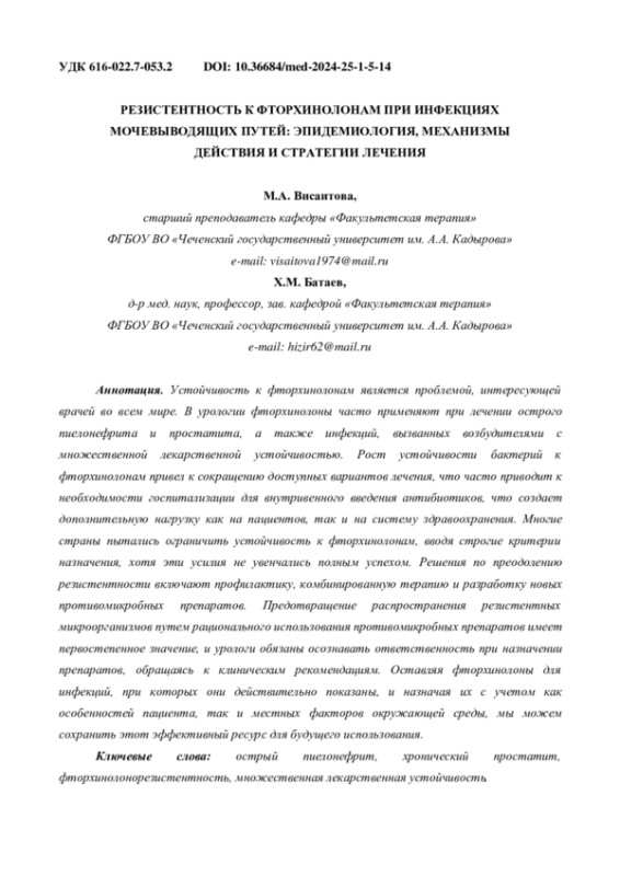 7. Котов С.В., Пульбере Сергей Александрович, Беломытцев С.В., Перов Р.А., Алесина Н.В., Желтикова Е.А. Антибиотикорезистентность - Новый вызов современной урологии // ЭКУ. 2020. №5. EDN: SDLKPQ