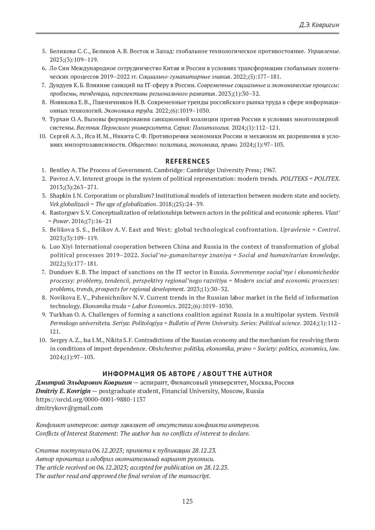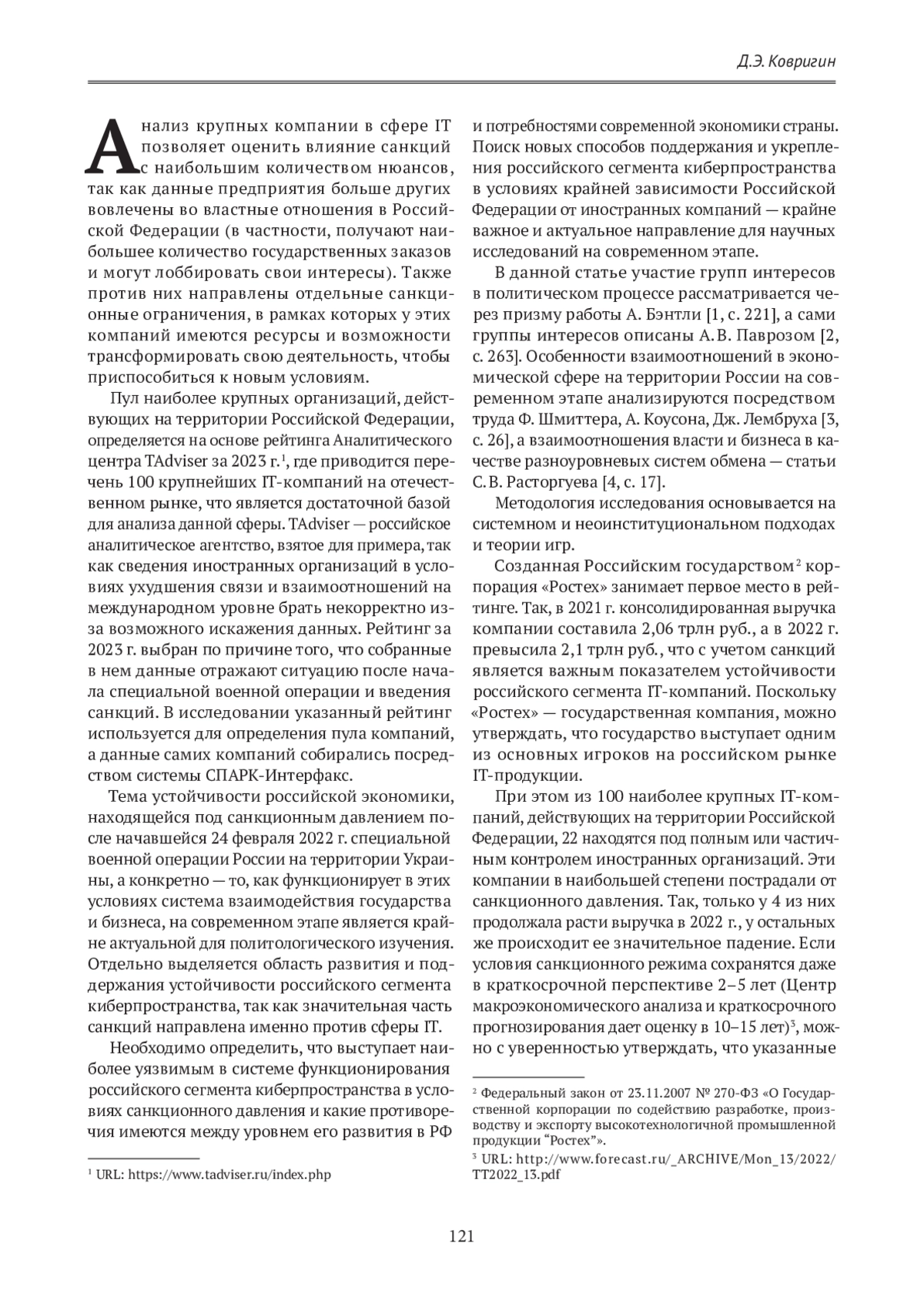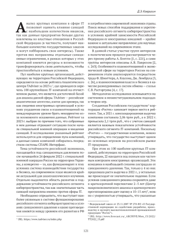 Ключевые фразы: санкции, ГОСУДАРСТВЕННОЕ РЕГУЛИРОВАНИЕ, национальный сегмент киберпространства, информационные технологии, экономика