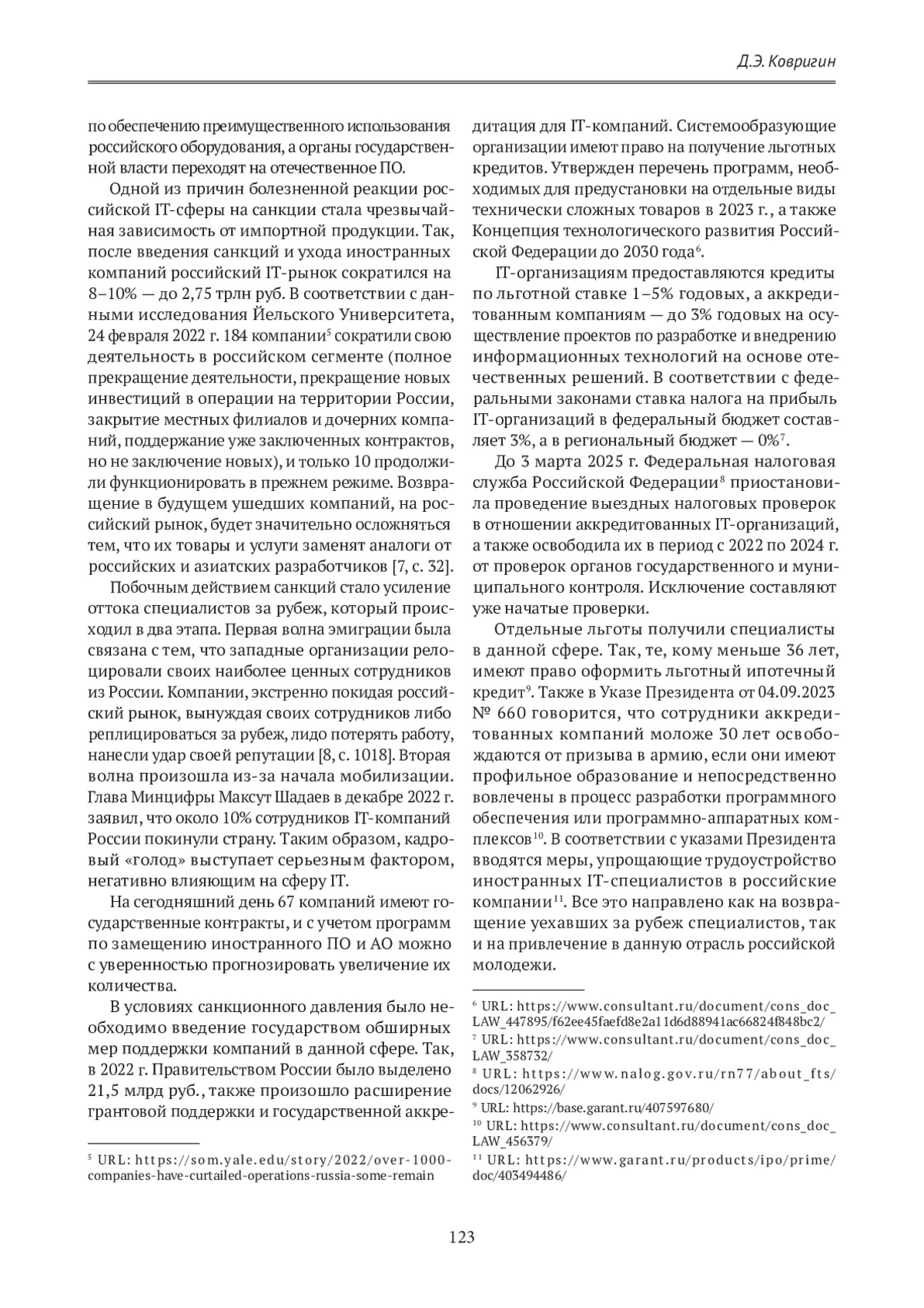 КОВРИГИН Д. Э. РОССИЙСКИЙ IT-РЫНОК В УСЛОВИЯХ САНКЦИОННОГО ДАВЛЕНИЯ ЗАПАДА // ГУМАНИТАРНЫЕ НАУКИ. ВЕСТНИК ФИНАНСОВОГО УНИВЕРСИТЕТА. 2024. ТОМ 14, № 2