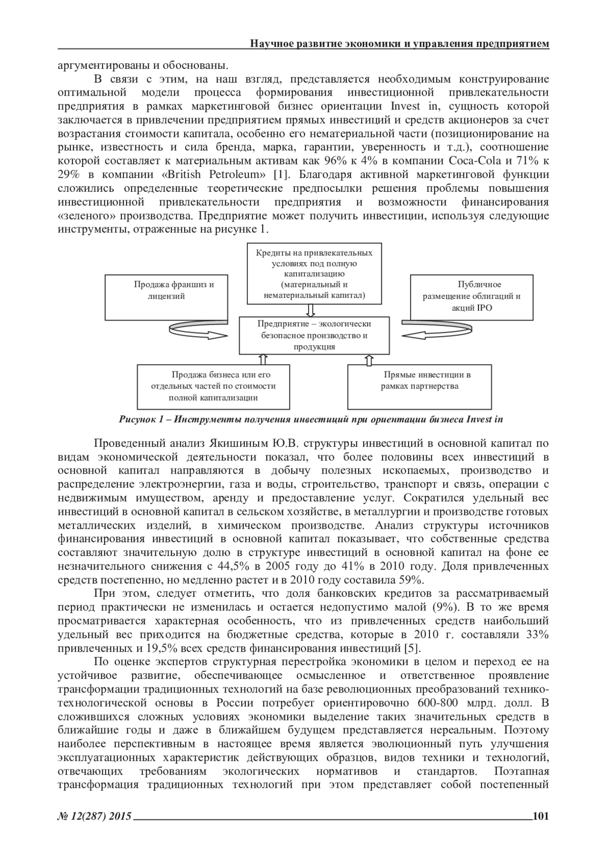 В статье рассматриваются вопросы создания дополнительных условий привлечения инвестиций в экологически безопасное производство на основе маркетинговой бизнес ориентации Invest in на фоне общих системных проблем в финансовой сфере.