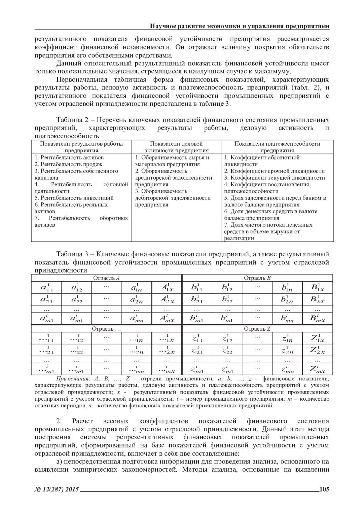 Реализация данной последовательности основана на построении, в первую очередь, системы репрезентативных финансовых показателей промышленных предприятий с учетом отраслевой принадлежности, что формируется на базе показателей финансовой устойчивости и состоит из следующих этапов (табл. 1).
