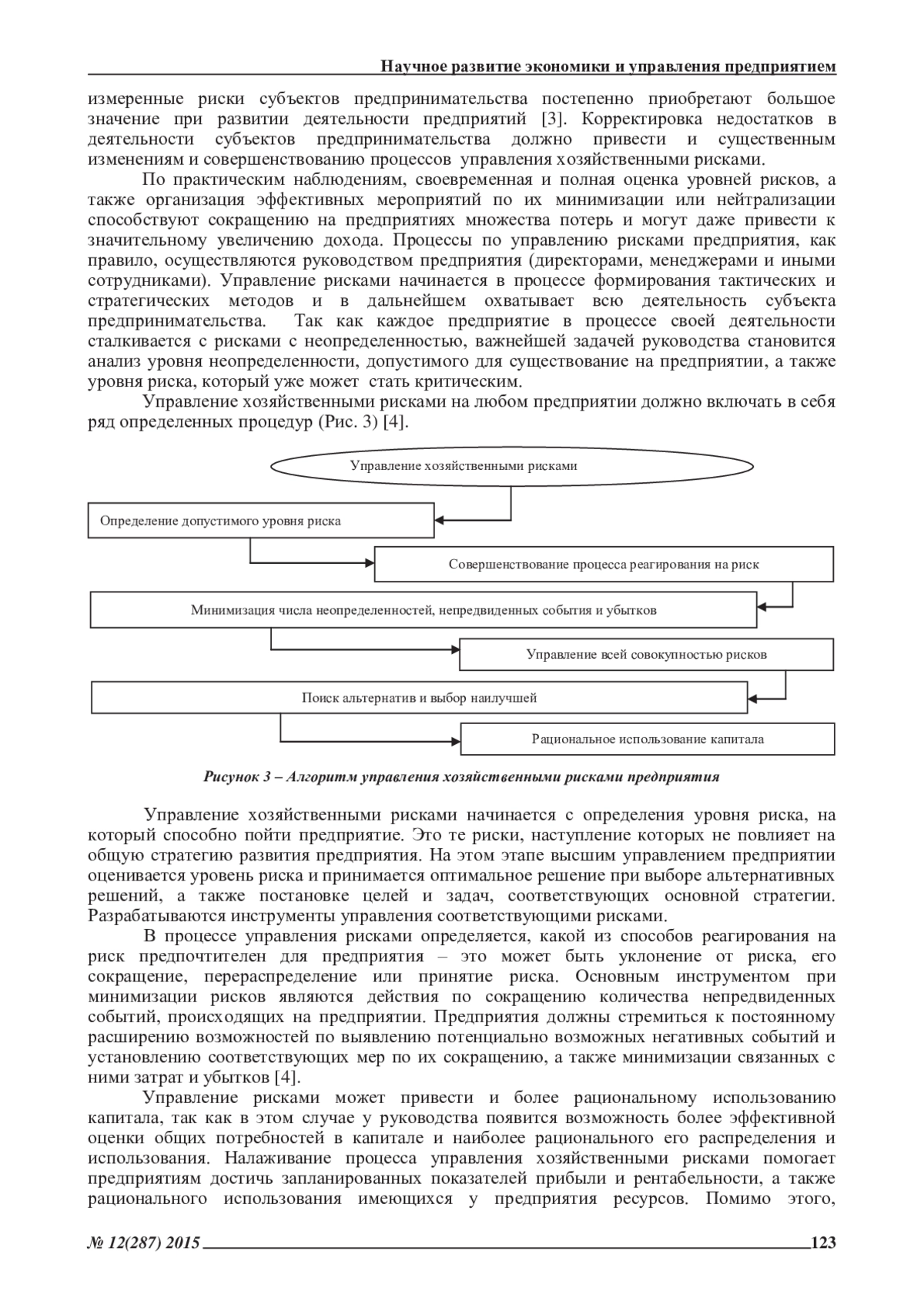 4. Кукина, Е.Е. Хозяйственные риски на предприятиях реального сектора экономики: классификация, оценка, система управления [Текст] / Е.Е. Куклин // Социально-экономические явления и процессы. - 2012. - №7-8. EDN: PZRTAD