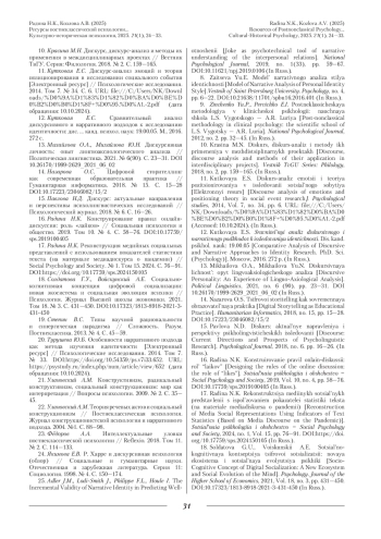 16. Радина Н.К. Конструирование правил онлайн-дискуссии: роль “лайков” // Социальная психология и общество. 2019. Т. 10. № 4. С. 58-76. DOI: 10.17759/sps.2019100405