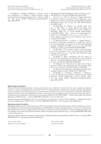 36. Radina N. Men’s socialization and the history of man’s life: the reproduction of male culture in the individual narrative // Social and Education History. 2019. Vol. 8. № 2. P. 119-144. DOI: 10.17583/MCS.2019.3705