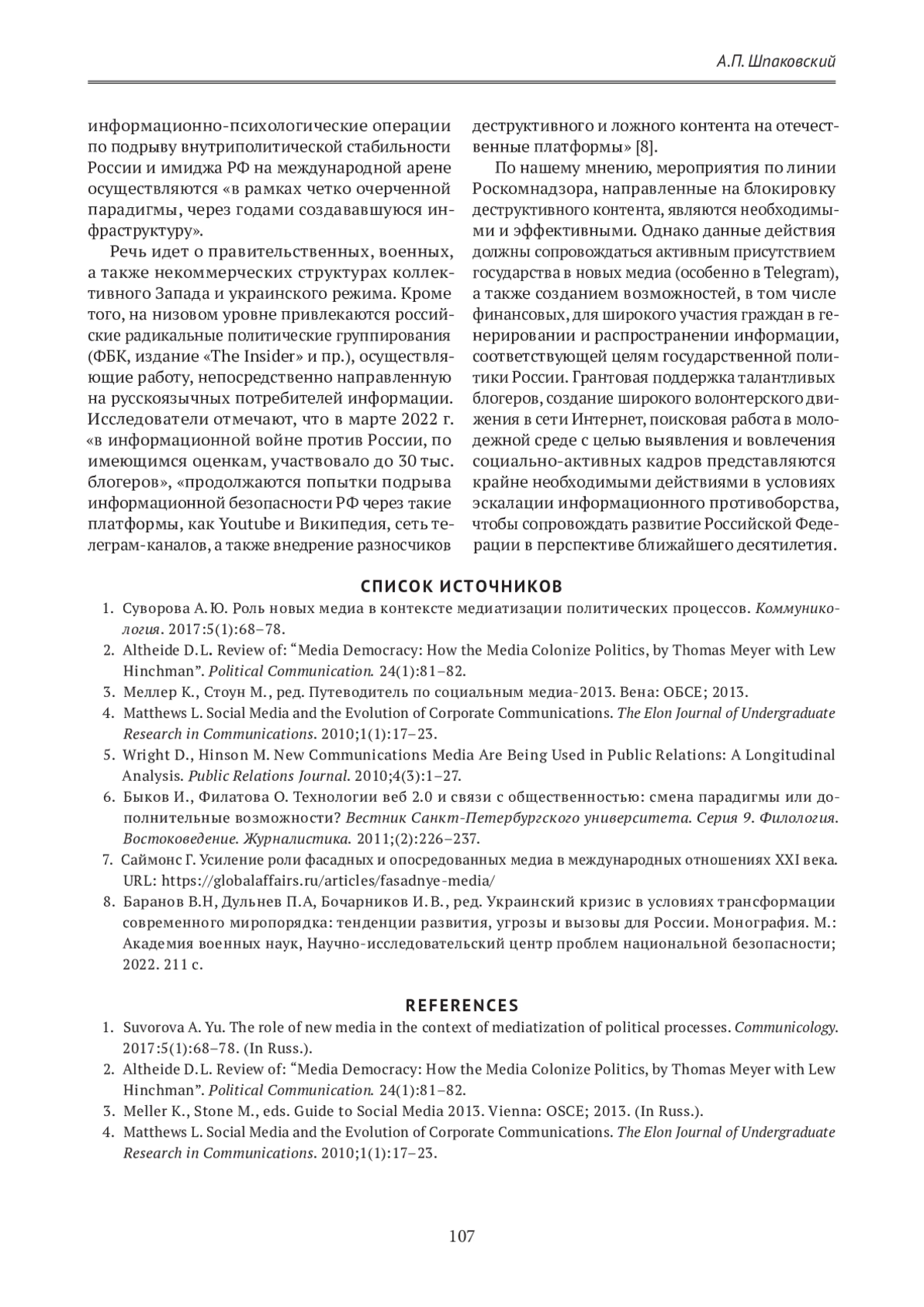 Ключевые фразы: новые медиа, виртуальные сетевые сообщества, информационно-коммуникационные технологии, телеграм-каналы, информационно-психологические операции