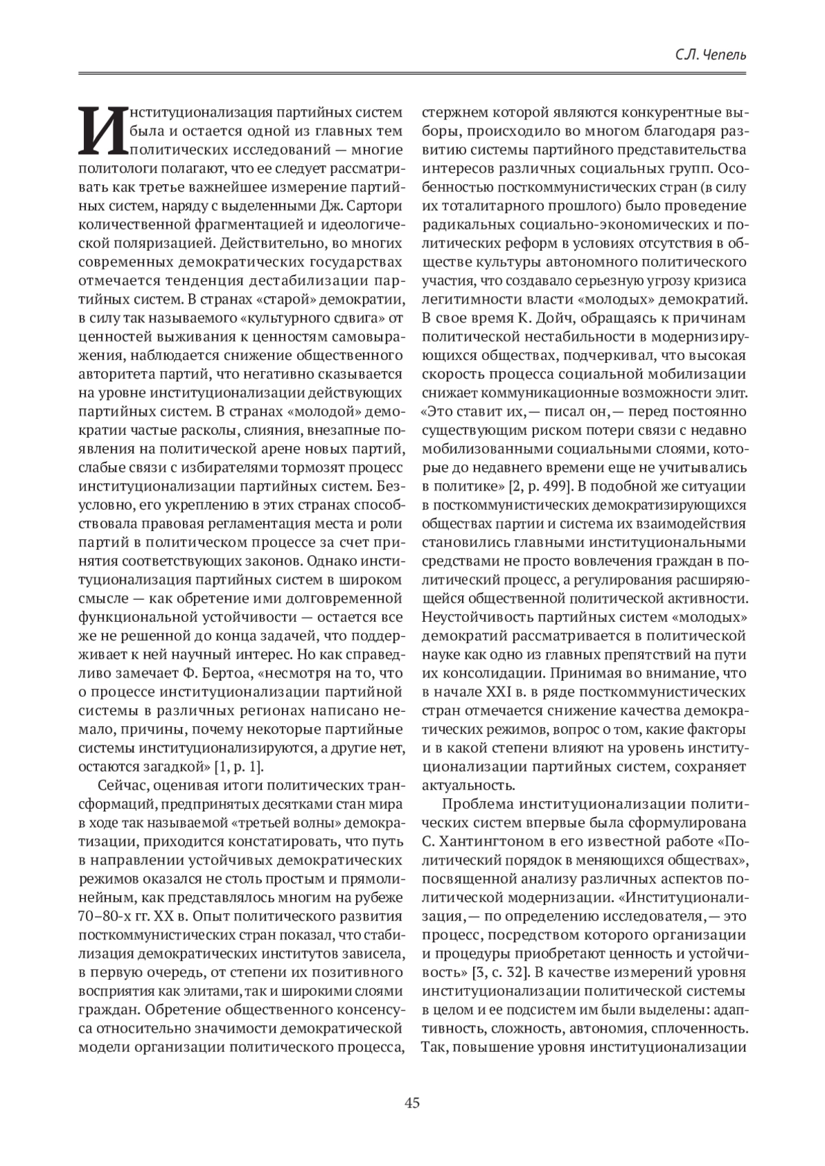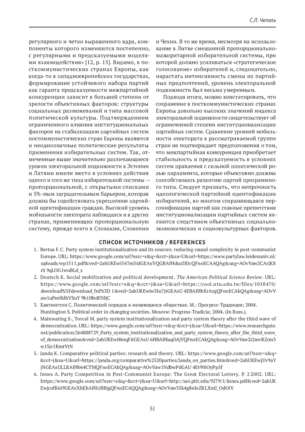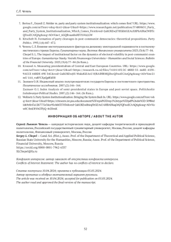ЧЕПЕЛЬ С. Л. ИНСТИТУЦИОНАЛИЗАЦИЯ ПАРТИЙНЫХ СИСТЕМ В ПОСТКОММУНИСТИЧЕСКИХ СТРАНАХ ЕВРОПЫ: ФАКТОРЫ И ПРОБЛЕМЫ // ГУМАНИТАРНЫЕ НАУКИ. ВЕСТНИК ФИНАНСОВОГО УНИВЕРСИТЕТА. 2024. ТОМ 14, № 3