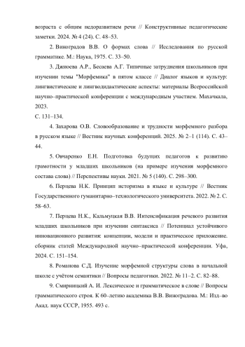 4. Захарова О.В. Словообразование и трудности морфемного разбора в русском языке // Вестник научных конференций. 2025. № 2-1 (114). С. 43-44. EDN: EHQZWM