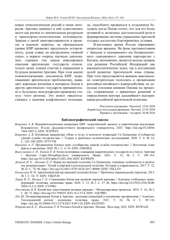 Статья: КУРС НА СЕВЕР: АРКТИЧЕСКАЯ ПОЛИТИКА КИТАЯ В КОНТЕКСТЕ ГЛОБАЛЬНЫХ ГЕОПОЛИТИЧЕСКИХ ИЗМЕНЕНИЙ (2024)