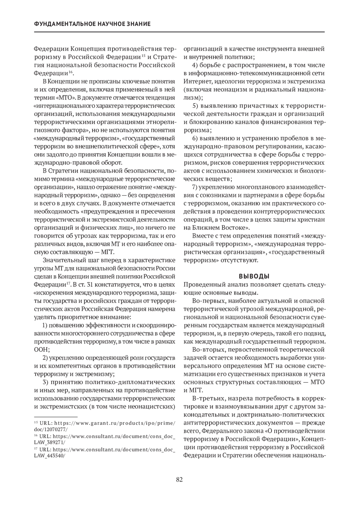 16. Плотников А. В. К вопросу юридического определения понятия «Международный терроризм». Вестник РУДН. Серия: Юридические науки. 2009;(3):105-118.
