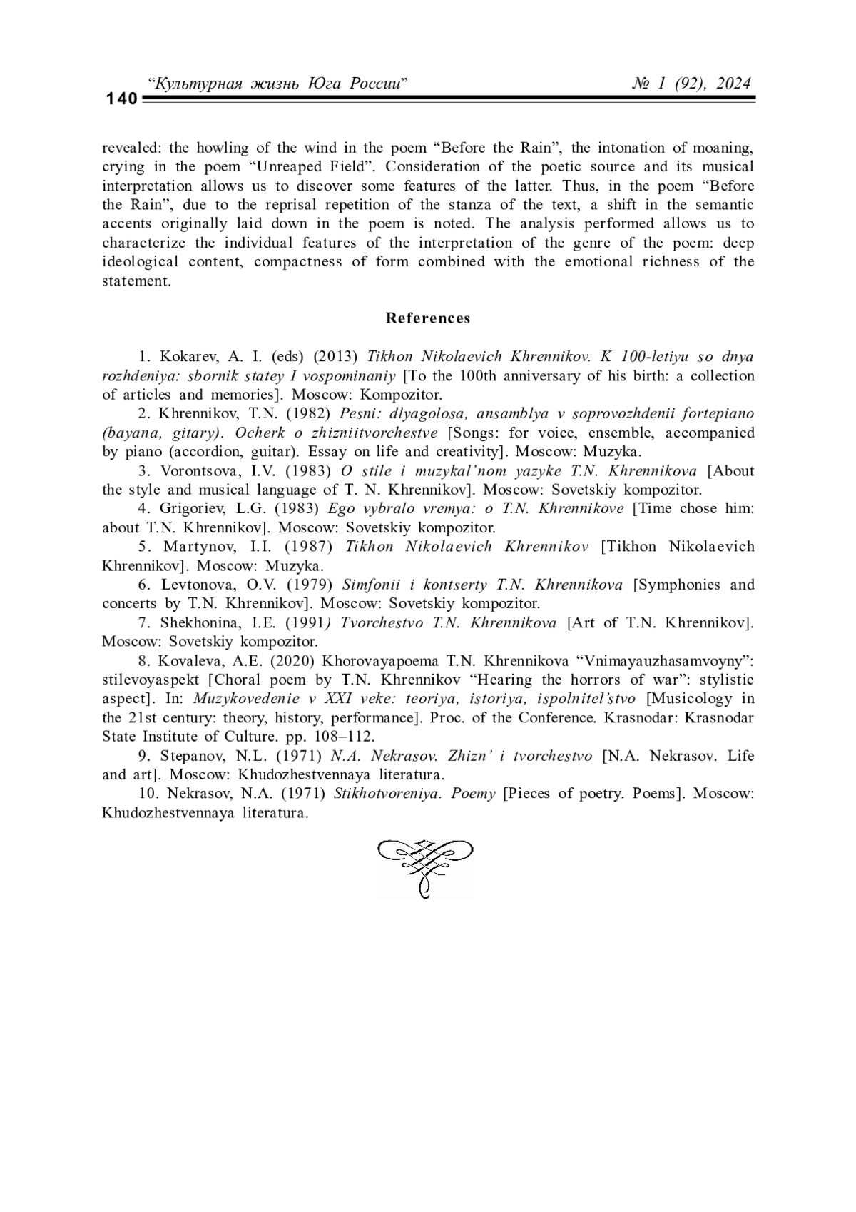 3. Воронцова И.В. О стиле и музыкальном языке Т.Н. Хренникова. М.: Советский композитор, 1983. 128 с. EDN: FKOAHU
