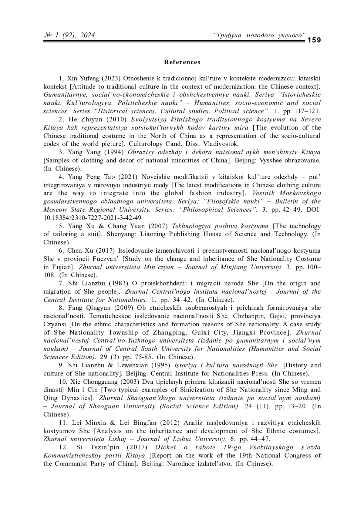СИНЬ Ю. НАЦИОНАЛЬНАЯ ОДЕЖДА В СИСТЕМЕ ТРАДИЦИОННОЙ КУЛЬТУРЫ НАРОДНОСТИ ШЭ: ИСТОРИЯ РАЗВИТИЯ // КУЛЬТУРНАЯ ЖИЗНЬ ЮГА РОССИИ. 2024. № 1 (92)
