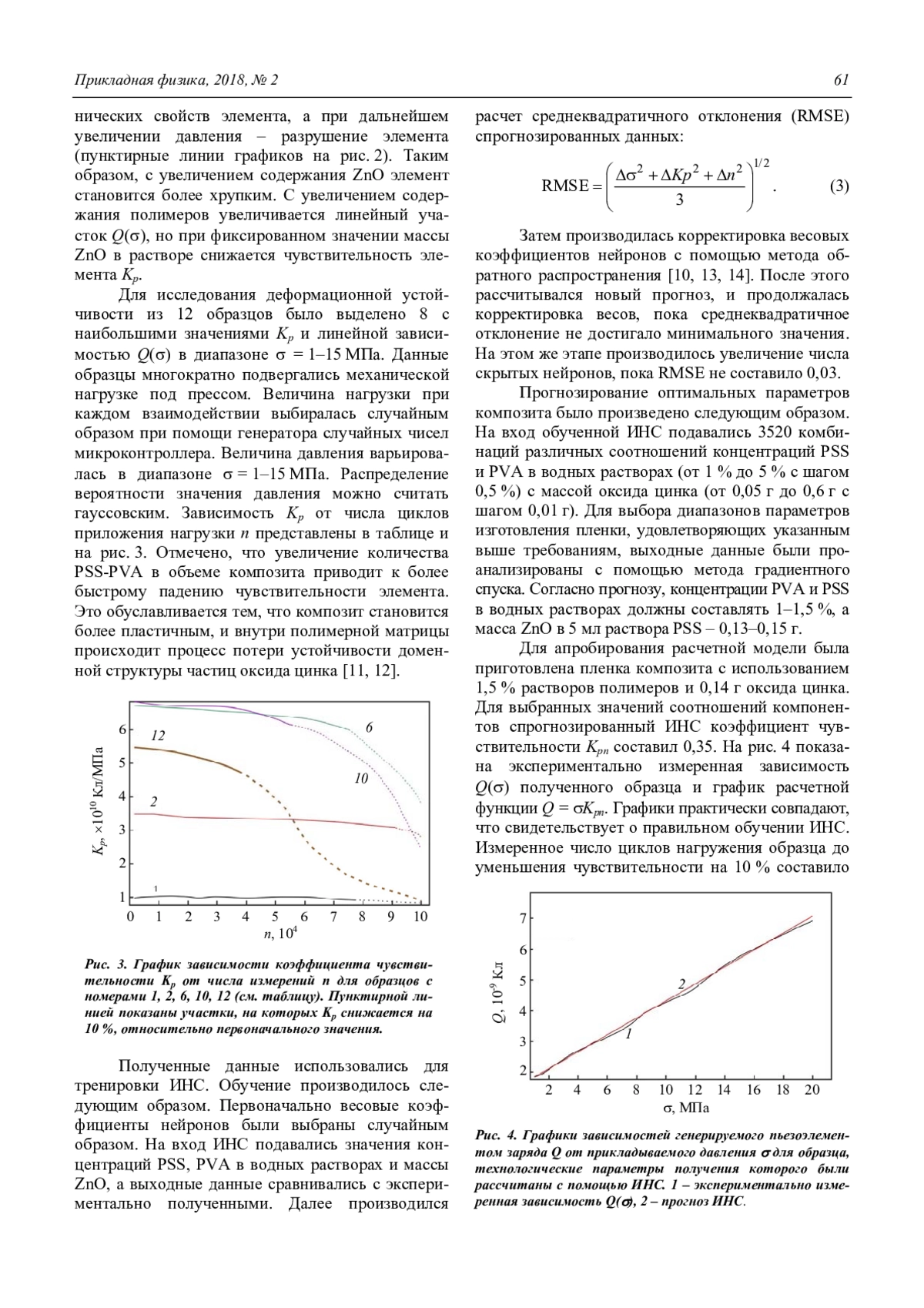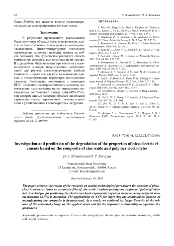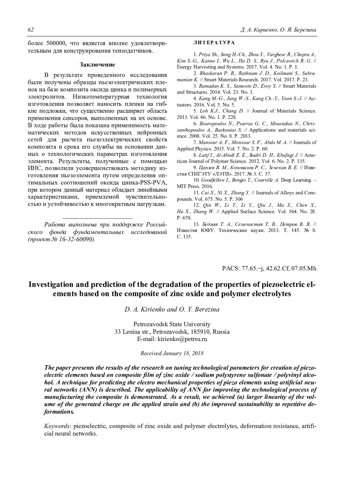 Ключевые фразы: пьезоэлектрик, композит оксида цинка и полимерных электролитов, деформационная стойкость, искусственные нейронные сети