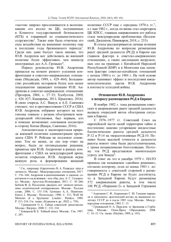 3. Болдовский К. А., Джалилов Т. А., Пивоваров Н. Ю. Ю.В. Андропов: два года на вершине власти (рабочие записи 1980-1983 гг.) // Новейшая история России. 2018. Т. 8, № 1. С. 232-279. ;. DOI: 10.21638/11701/spbu24.2018.117 EDN: YXOPKA