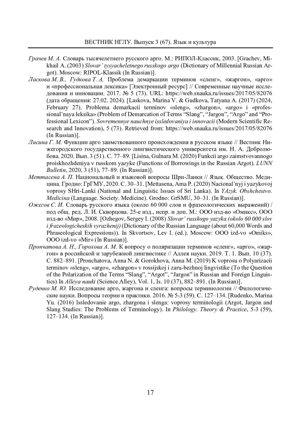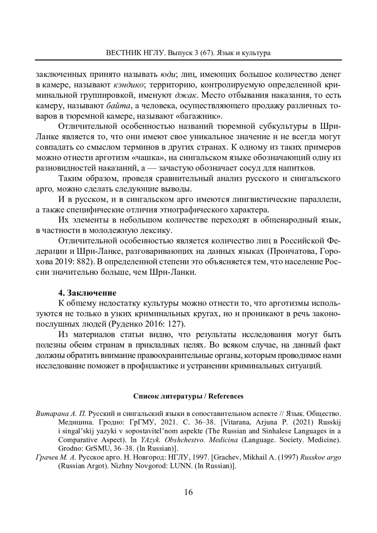 ВИТАНАЧЧИ Л. СРАВНИТЕЛЬНЫЙ АНАЛИЗ РУССКОГО И СИНГАЛЬСКОГО АРГО // ВЕСТНИК НИЖЕГОРОДСКОГО ГОСУДАРСТВЕННОГО ЛИНГВИСТИЧЕСКОГО УНИВЕРСИТЕТА ИМ. Н. А. ДОБРОЛЮБОВА. 2024. № 67