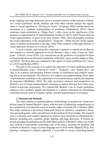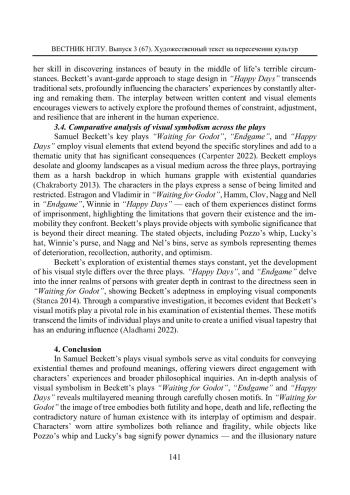 Статья: ВИЗУАЛЬНЫЙ СИМВОЛИЗМ В ПЬЕСАХ С. БЕККЕТА ("В ОЖИДАНИИ ГОДО", "ФИНАЛ" И "СЧАСТЛИВЫЕ ДНИ") (2024)