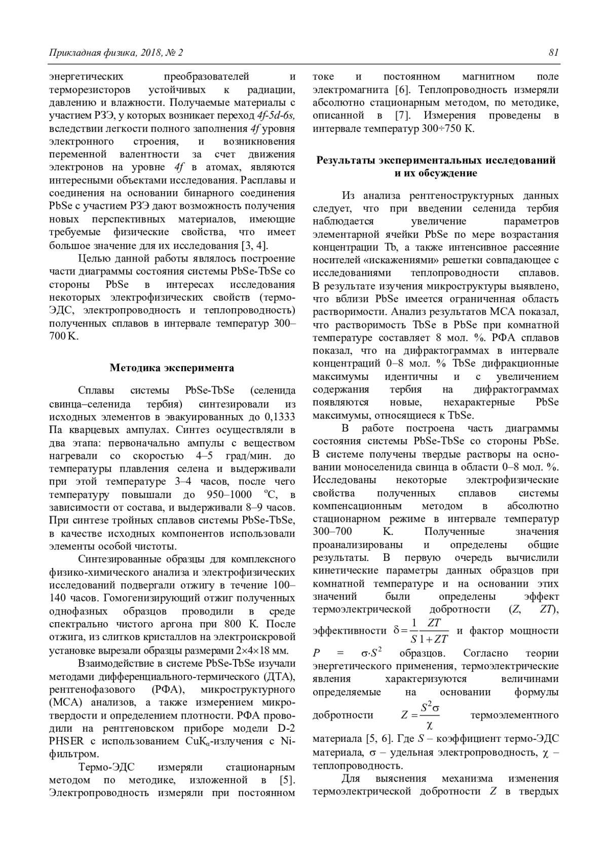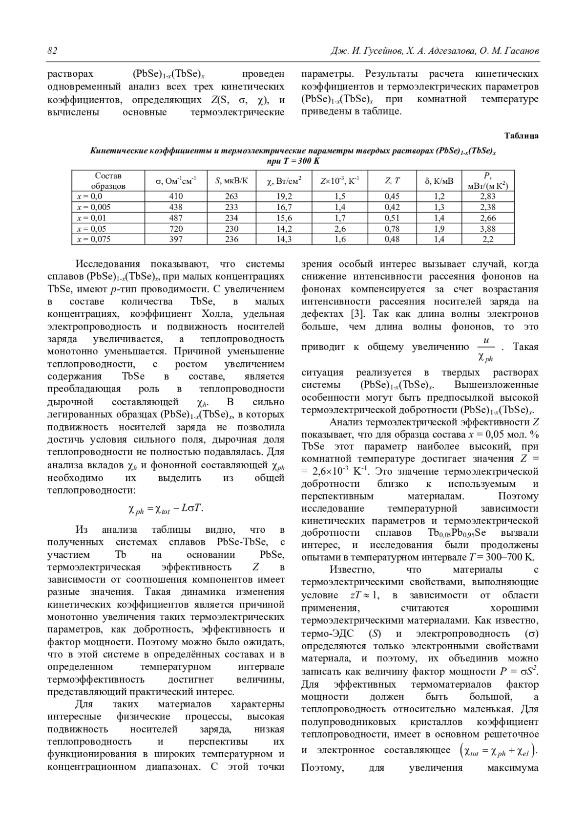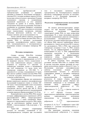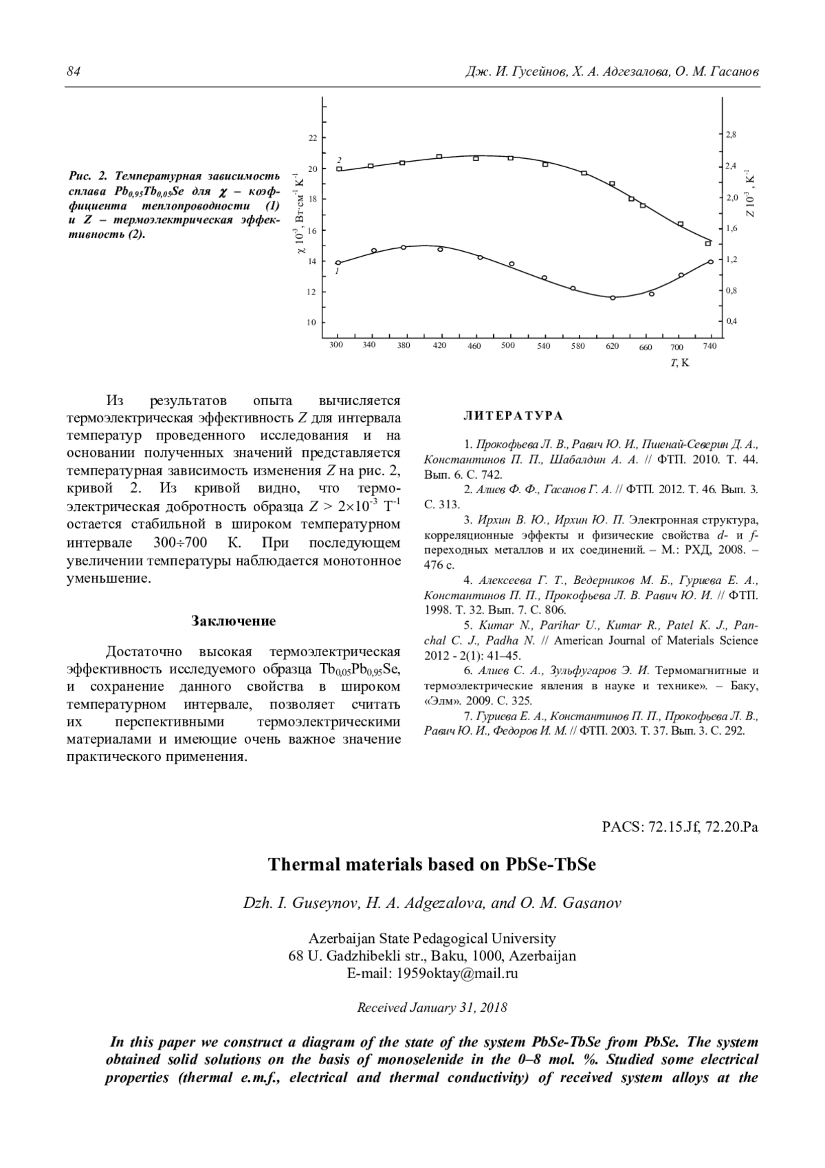 Гусейнов Дж. И., Адгезалова Х. А., Гасанов О. М. Термоматериалы на основе твердых растворов PbSe-TbSe 80