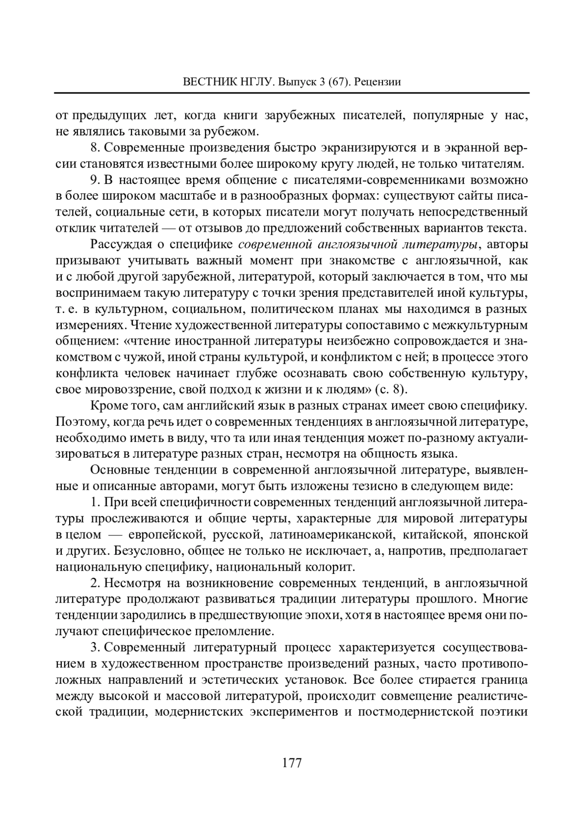 ФЕДУЛЕНКОВА Т. Н. О ТЕНДЕНЦИЯХ В СОВРЕМЕННОЙ АНГЛОЯЗЫЧНОЙ ЛИТЕРАТУРЕ // ВЕСТНИК НИЖЕГОРОДСКОГО ГОСУДАРСТВЕННОГО ЛИНГВИСТИЧЕСКОГО УНИВЕРСИТЕТА ИМ. Н. А. ДОБРОЛЮБОВА. 2024. № 67