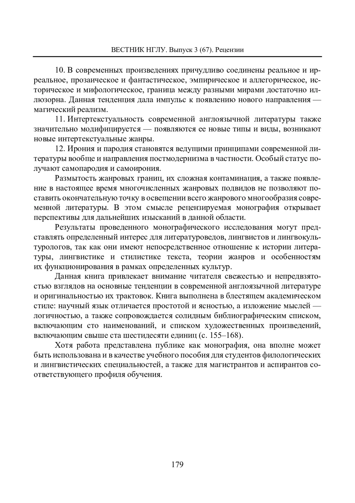 Рецензия на монографию: Лушникова Г. И. Современная англоязычная литература: традиции и эксперимент / Г. И. Лушникова, Т. Ю. Осадчая. Москва: ИНФРА-М, 2023. 170 с.