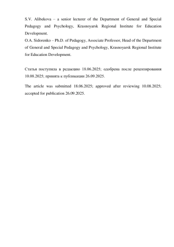 8. Сидоренко О.А., Хабарова И.В., Алибекова С.В. Диагностика и анализ профессиональных дефицитов учителей как субъектов психологической службы образования // Красноярское образование: вестник развития. 2023. № 1 (6). С. 77-82.