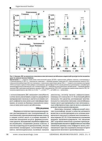 Материалы и методы. Ишемический инсульт у крыс (n=16) моделировали введением вазоконстриктора эндотелина-1 (ET-1) в стриатум. Эффект фармакологического прекондиционирования с использованием ДХС как активного вещества оценивали, измеряя площадь инфаркта мозга в срезах мозга, окрашенных крезиловым фиолетовым. Влияние ДХС на показатели гликолиза и окислительного фосфорилирования в первичной культуре клеток мозжечка крысы оценивали, измеряя скорость закисления внеклеточной среды и скорости поглощения кислорода, соответственно.