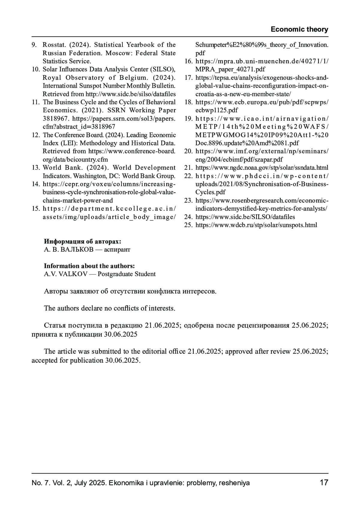 3. Gorbanev, M. (2012). “Sunspots, Unemployment, and Recessions, or Can the Solar Activity Cycle Be Linked to Economic Fluctuations?” MPRA Paper 40271, Munich Personal RePEc Archive.https://mpra.ub.uni-muenchen.de/40271/1/MPRA_paper_40271.pdf.