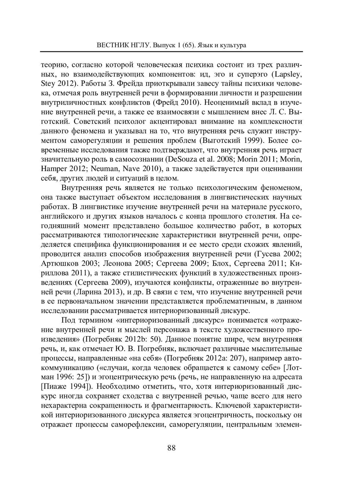 12. Погребняк Ю. В. Психологические функции интериоризованного дискурса // Вестник Ленингр. гос. ун-та им. А. С. Пушкина. 2011. Т. 1. № 2. С. 199-206. EDN: PAPIXN
