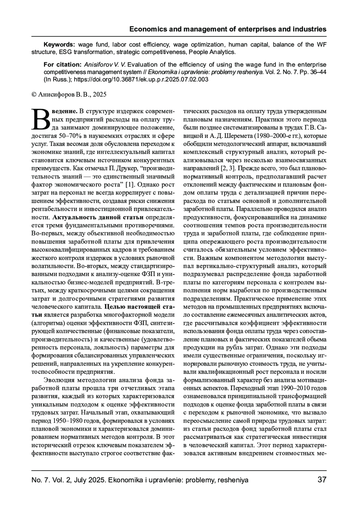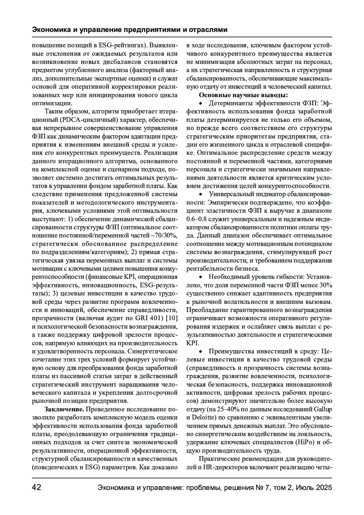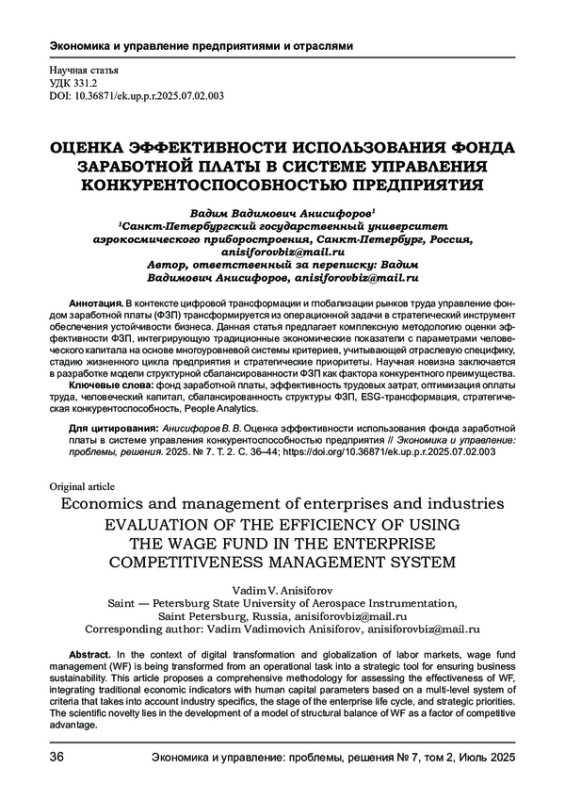 В контексте цифровой трансформации и глобализации рынков труда управление фондом заработной платы (ФЗП) трансформируется из операционной задачи в стратегический инструмент обеспечения устойчивости бизнеса. Данная статья предлагает комплексную методологию оценки эффективности ФЗП, интегрирующую традиционные экономические показатели с параметрами человеческого капитала на основе многоуровневой системы критериев, учитывающей отраслевую специфику, стадию жизненного цикла предприятия и стратегические приоритеты. Научная новизна заключается в разработке модели структурной сбалансированности ФЗП как фактора конкурентного преимущества.