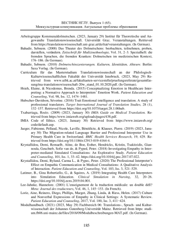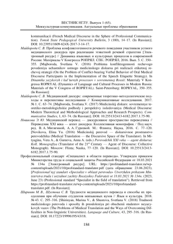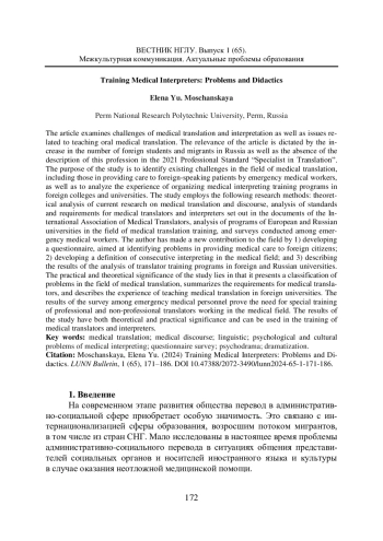 МОЩАНСКАЯ Е. Ю. ОБУЧЕНИЕ УСТНОМУ МЕДИЦИНСКОМУ ПЕРЕВОДУ: ПРОБЛЕМЫ, ДИДАКТИКА // ВЕСТНИК НИЖЕГОРОДСКОГО ГОСУДАРСТВЕННОГО ЛИНГВИСТИЧЕСКОГО УНИВЕРСИТЕТА ИМ. Н. А. ДОБРОЛЮБОВА. 2024. № 65