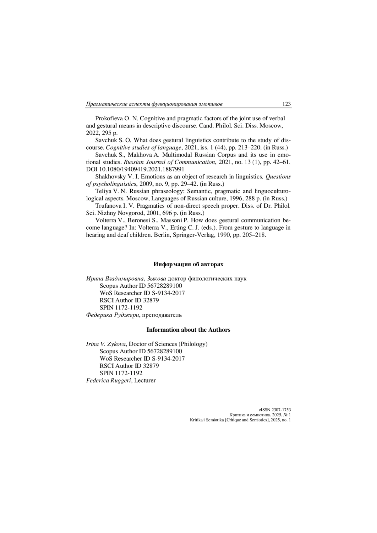14. Савчук С. О. Что вносит жестикуляционная лингвистика в изучение дискурса // Когнитивные исследования языка. 2021. Вып. 1 (44). С. 213-220.
