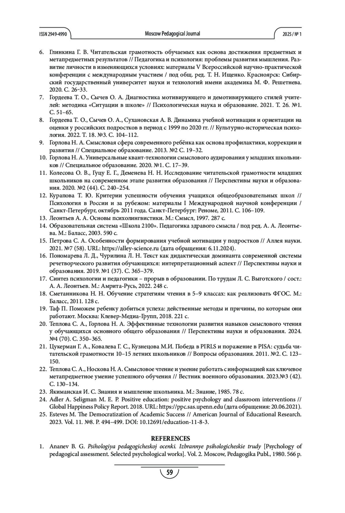 20. Теплова С. А., Горлова Н. А. Эффективные технологии развития навыков смыслового чтения у обучающихся основного общего образования // Перспективы науки и образования. 2024. №4 (70). С. 350-365. EDN: RRBQZY