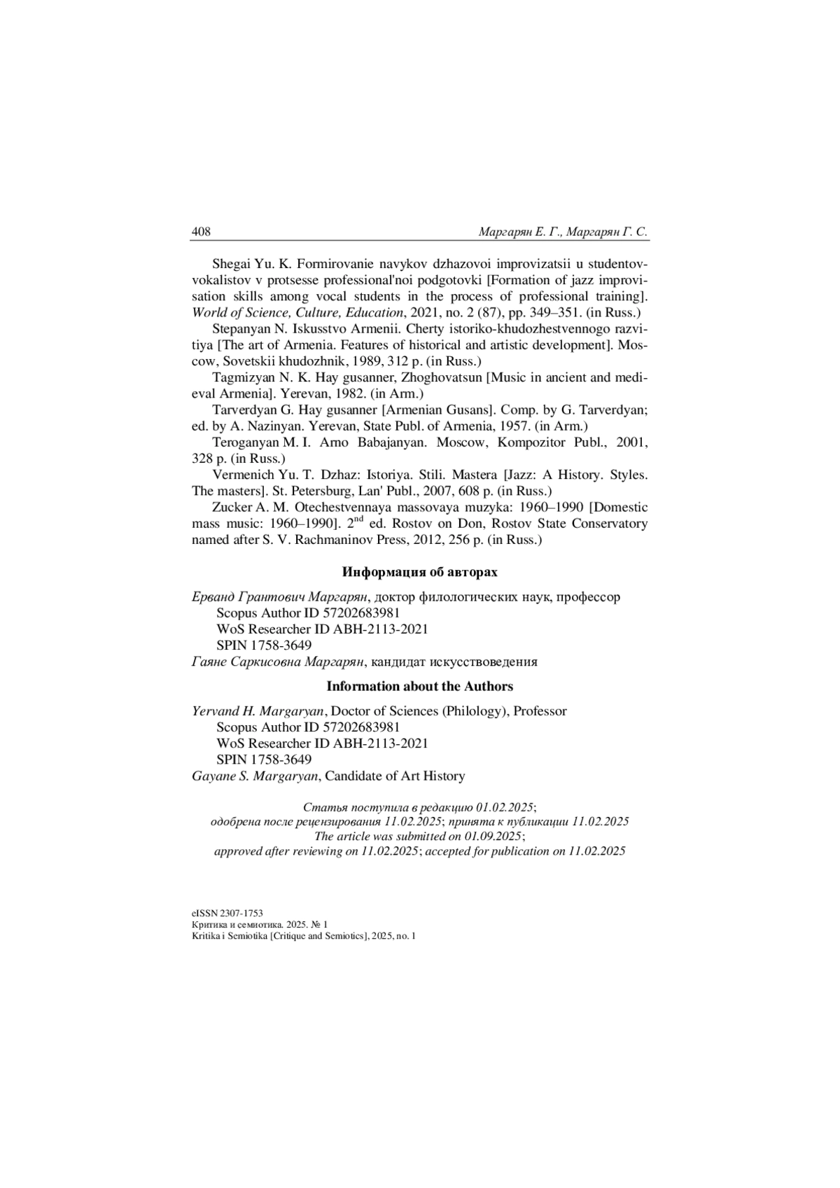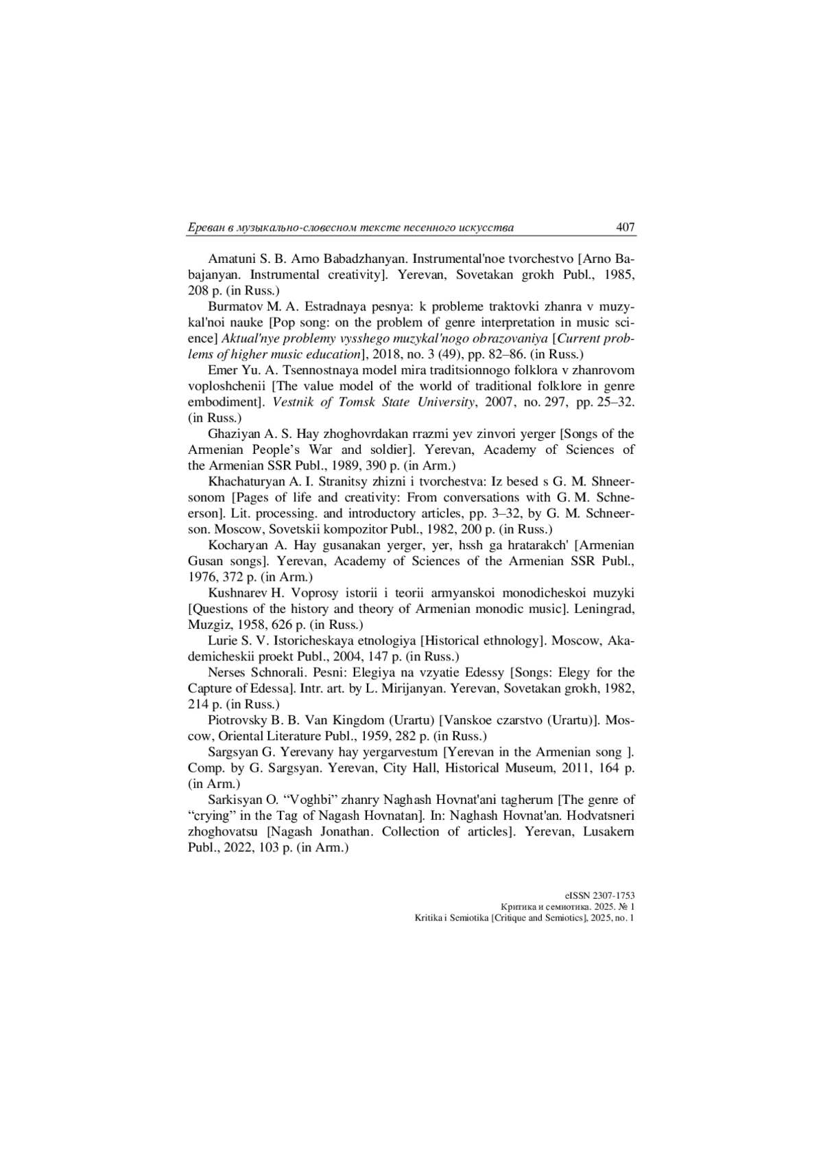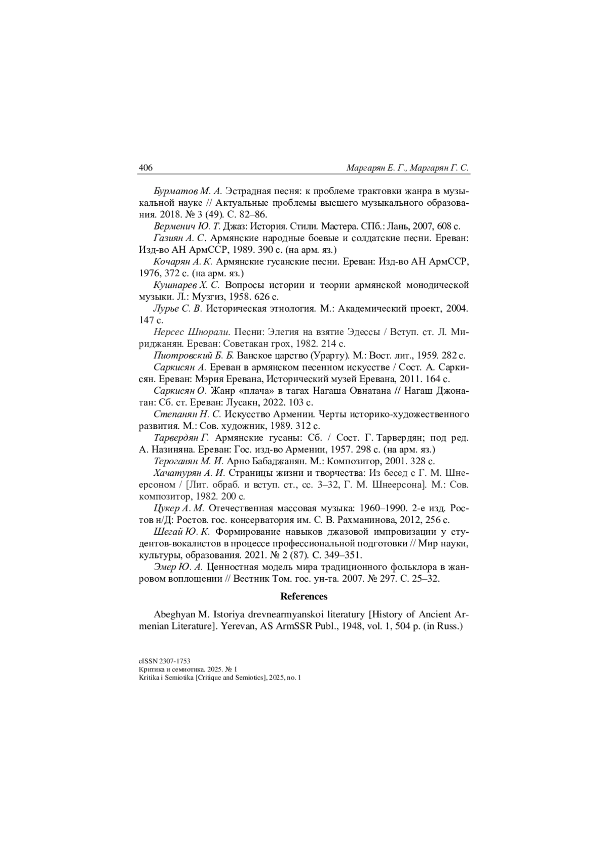 6. Кочарян А. К. Армянские гусанские песни. Ереван: Изд-во АН АрмССР, 1976, 372 с. (на арм. яз.).