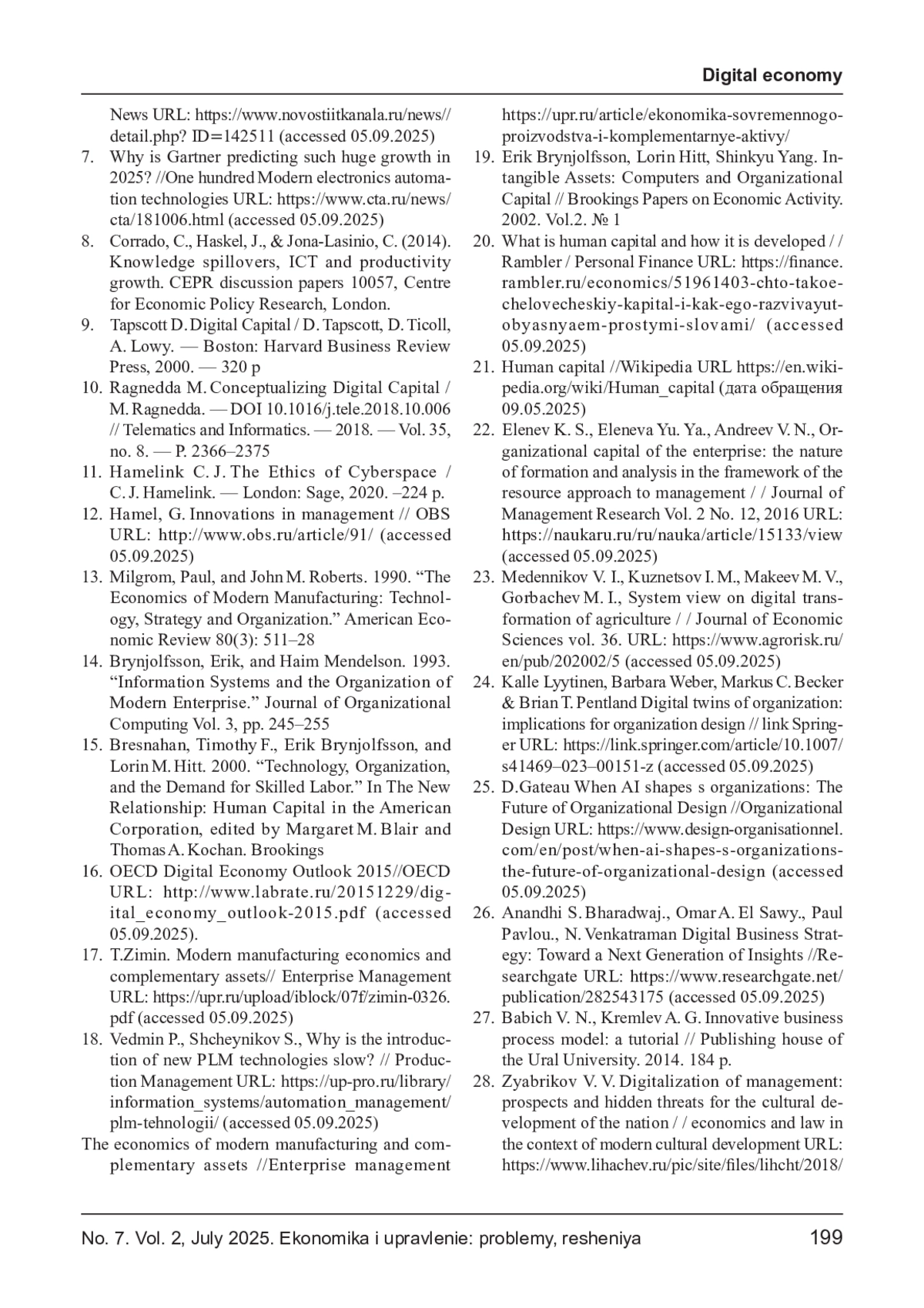 19. Economy state-of-the-art manufacturing and complementary assets //Enterprise Management URL: https://upr.ru/article/ekonomika-sovremennogo-proizvodstva-i-komplementarnye- aktivy (дата обращения 09.05.2025).