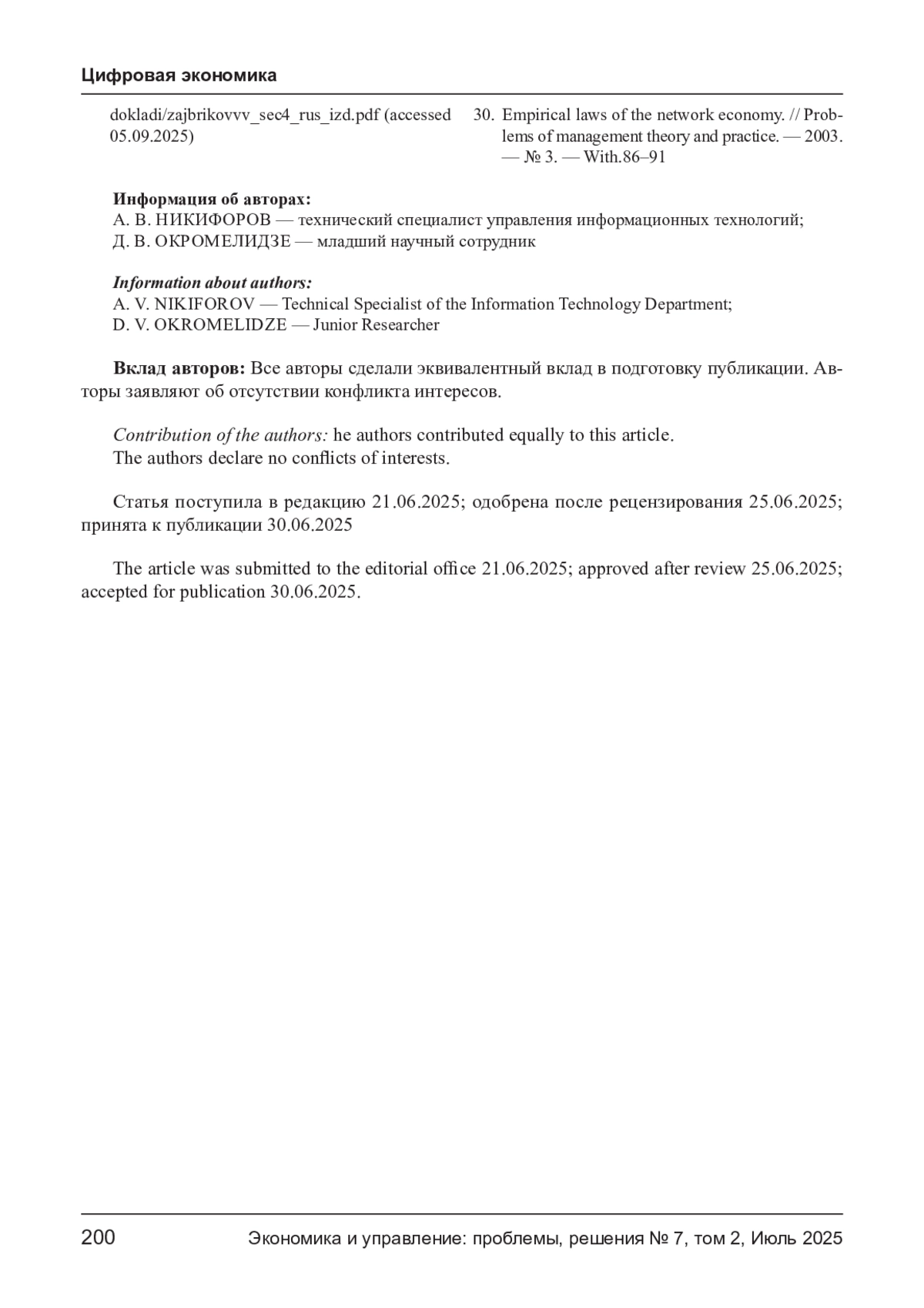 29. В. В. Зябриков Цифровизация менеджмента: перспективы и скрытые угрозы для культурного развития нации // экономика и право в контексте современного культурного развития URL: https://www.lihachev.ru/pic/site/files/lihcht/2018/dokladi/zajbrikovvv_sec4_rus_izd.pdf (дата обращения 09.05.2025).