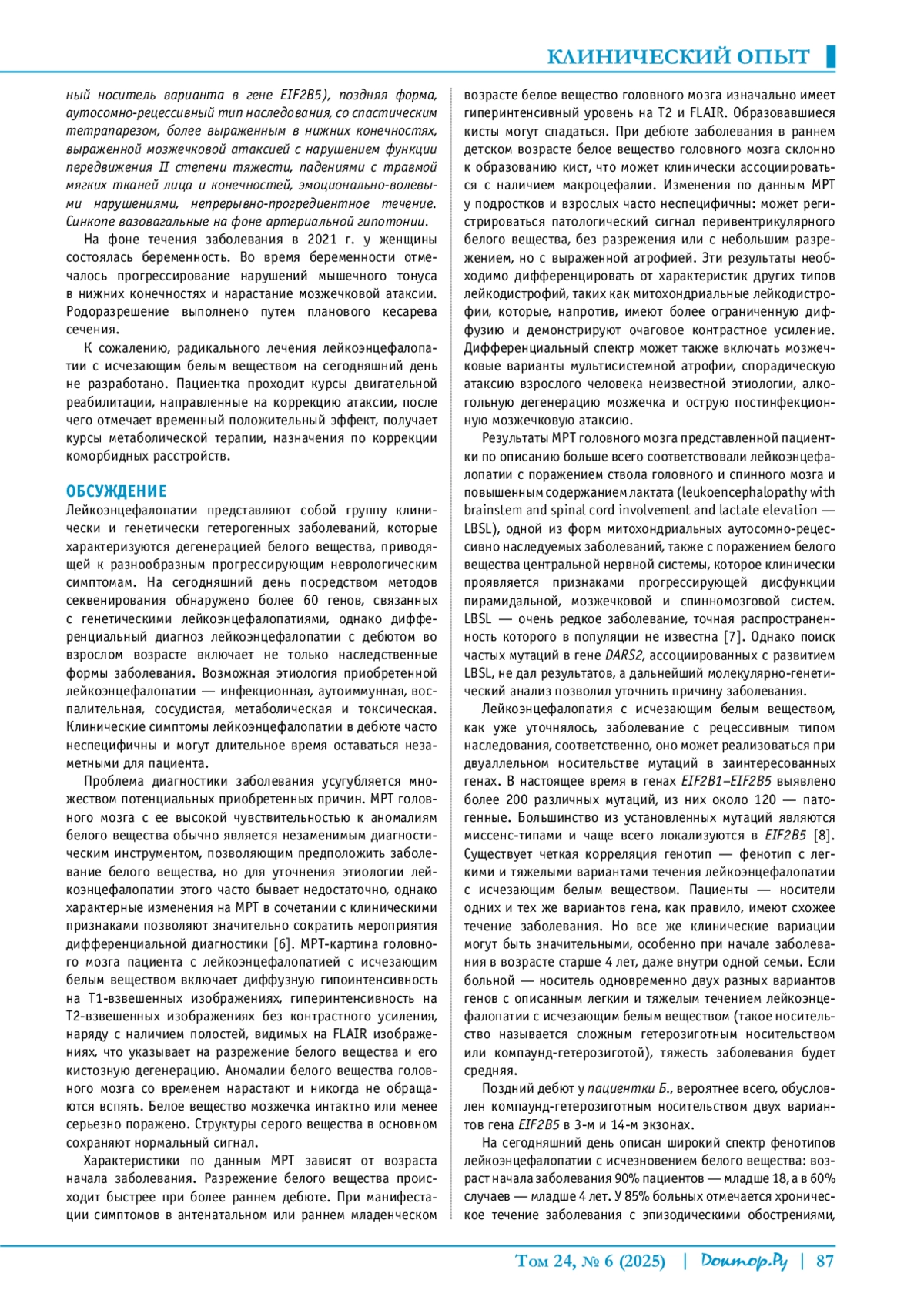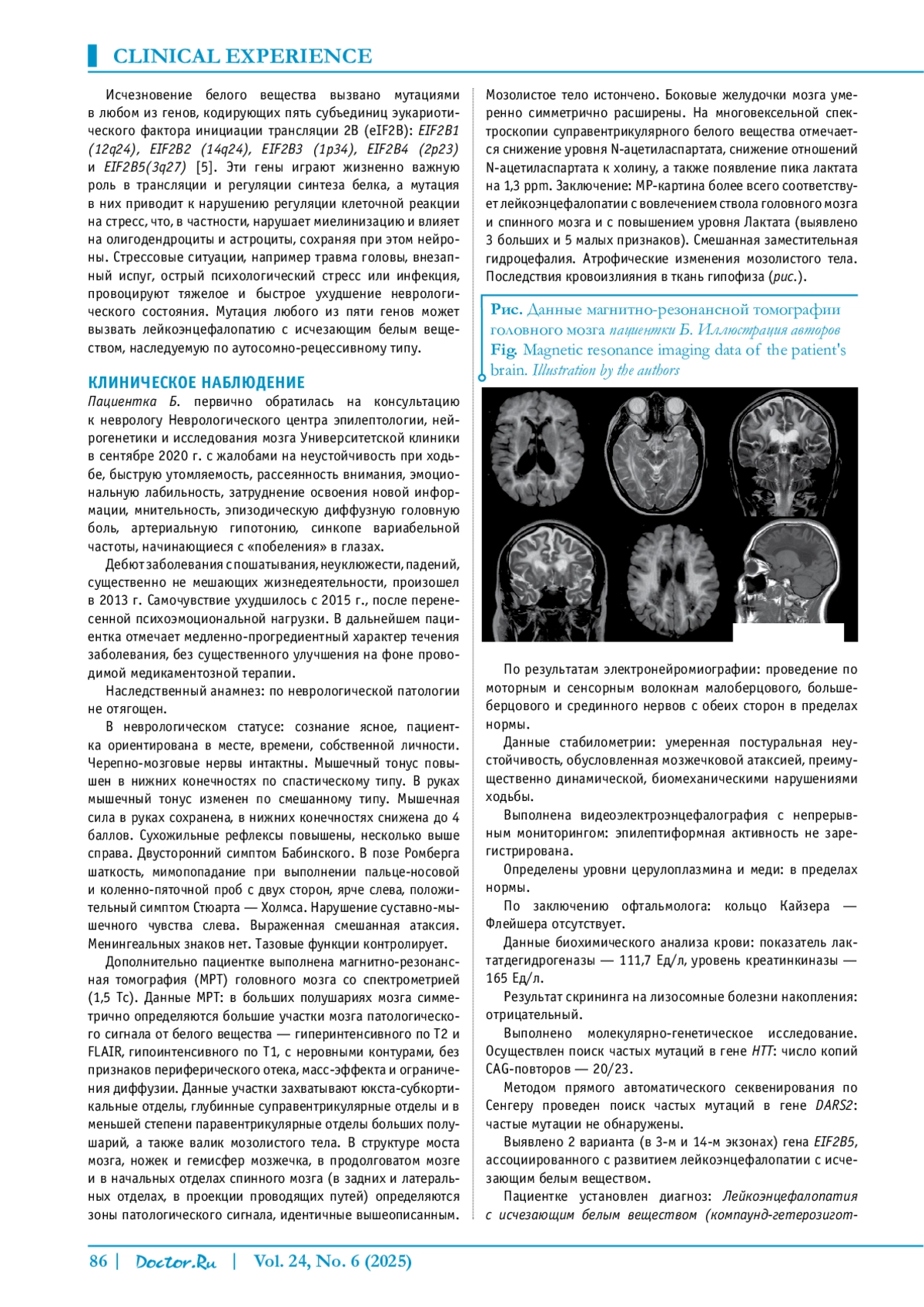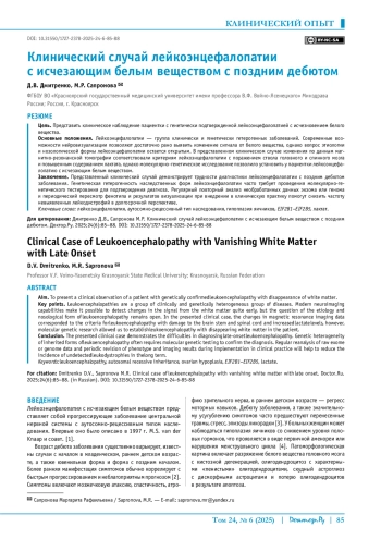 Статья: Клинический случай лейкоэнцефалопатии с исчезающим белым веществом с поздним дебютом (2025)
