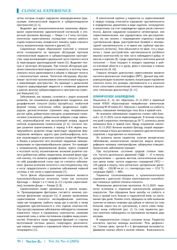Заключение. Приведенное клиническое наблюдение наглядно показывает, что сирингомиелия зачастую является случайной находкой. В представленном случае заболевание было диагностировано при выявлении специфических жалоб, определении анамнеза и выполнении магнитно-резонансной томографии спинного мозга.
