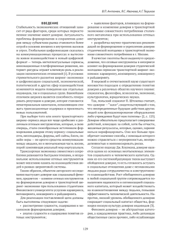 10. Тюриков А. Г., Антонюк В. П., Иванова Я. С. Доверие студенческой молодежи к транспортной экономике совместного потребления. Уровень жизни населения регионов России. 2023;19(2):272-283. https://doi.org/10.52180/1999-9836_2023_19_2_10_272_283