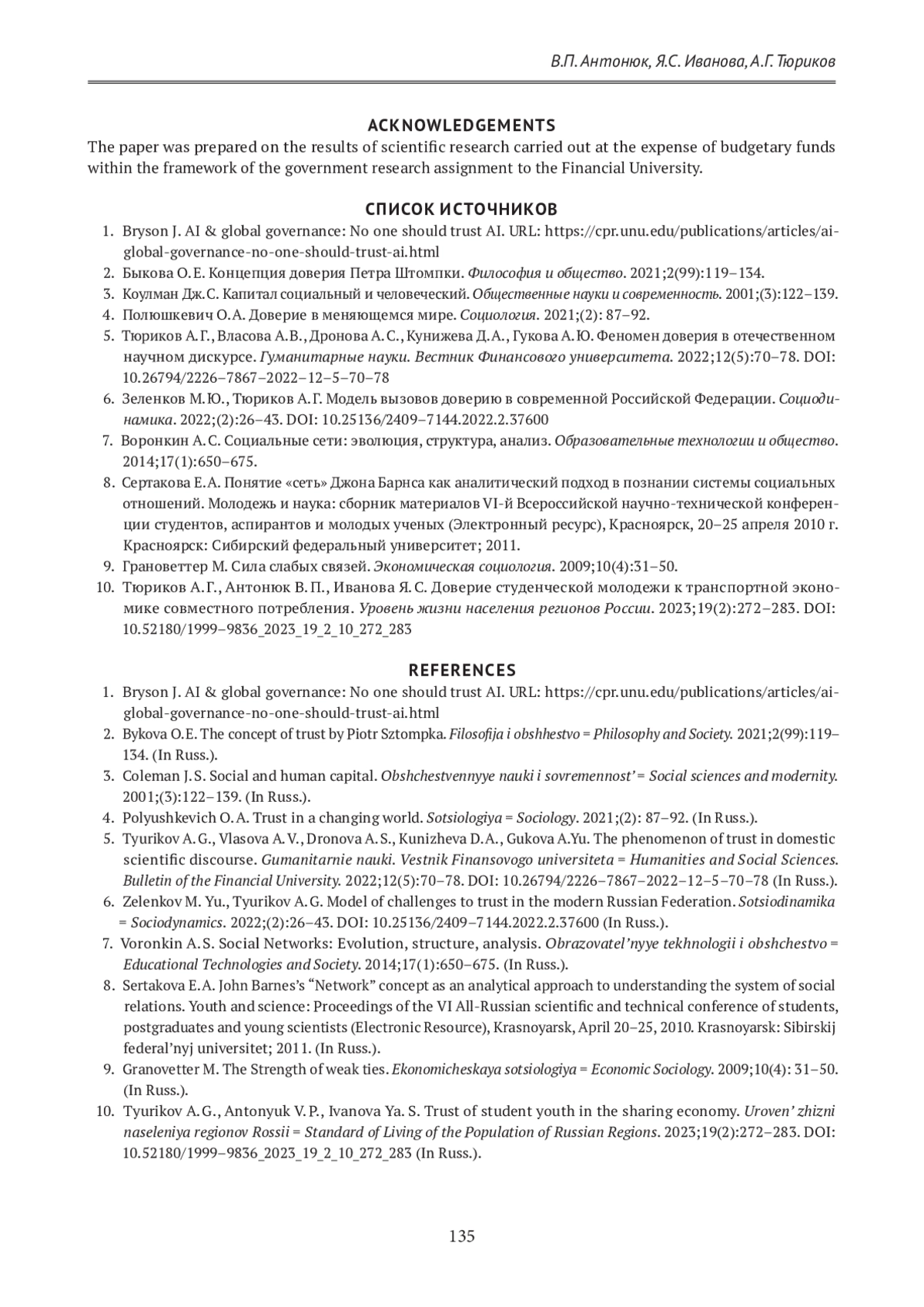 4. Полюшкевич О. А. Доверие в меняющемся мире. Социология. 2021;(2): 87-92.