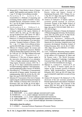 23. Mabiala G., Linskiy D. V., Amirova E. F. [et al.] Human capital quality and its impact on economic growth of Russian regions // MIR (Modernization. Innovation. Research). 2023. 14(4). P. 654-679. DOI: 10.18184/2079-4665.2023.14.4.654-679 EDN: ZXZHRG