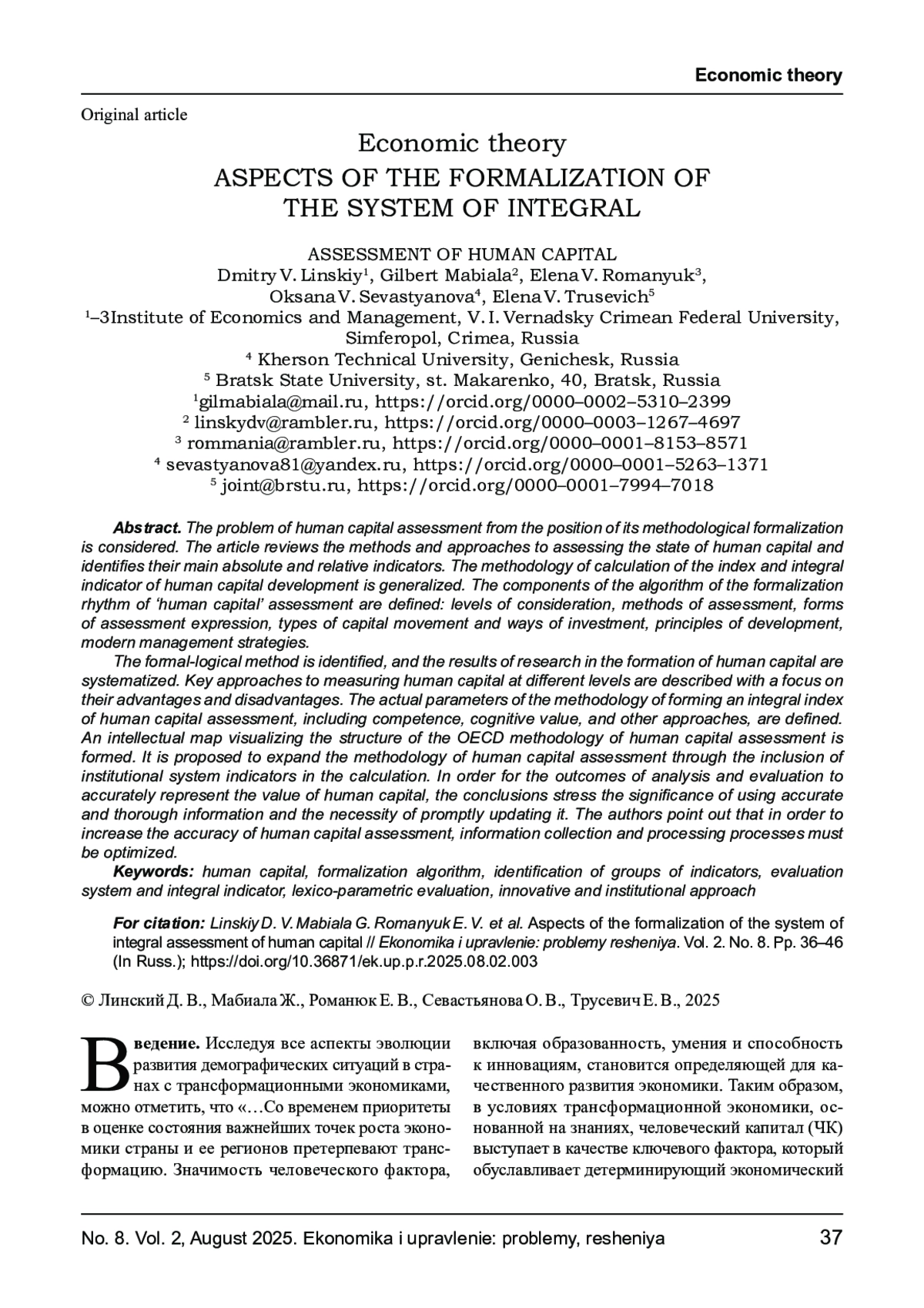 7. Мабиала Ж., Линский Д. В., Волошин А. И. и др. Аспекты формирования и развития экономических систем в условиях социально- экономических преобразований // ЦИ- ТИСЭ. 2023. № 3(37). С. 383-397. DOI: 10.15350/2409-7616.2023.3.32 EDN: YIBQOZ