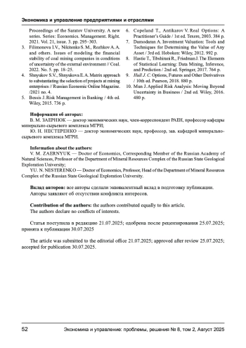 4. Шнюков С.В., Шнюкова Е. А. Матричный подход к обоснованию отбора проектов на предприятиях горнодобывающей промышленности // Российский экономический интернет-журнал. /2021 № 4. EDN: XSQIOU