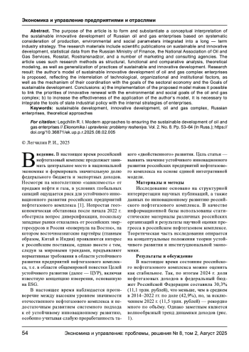 Выводы: а) внедрение предложенной модели позволяет связать приоритеты инновационного обновления с экологическими и социальными целями нефтегазового комплекса; б) для повышения эффективности применения авторской модели необходима интеграция инструментов государственной промышленной политики с внутренними стратегиями предприятий.