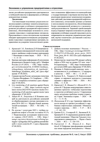 6. По итогам 1 полугодия 2025 г. глубина переработки нефти в России составила 85,1% // Национальная ассоциация нефтегазового сервиса (30.07.2025). - URL: https://nangs.org/news/downstream/refining/poitogam-1-polugodiya-2025-g-glubina-pererabotkinefti-v-rossii-sostavila-85-1 (дата обращения: 07.08.2025).