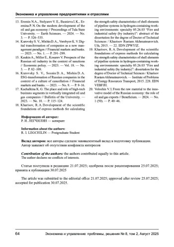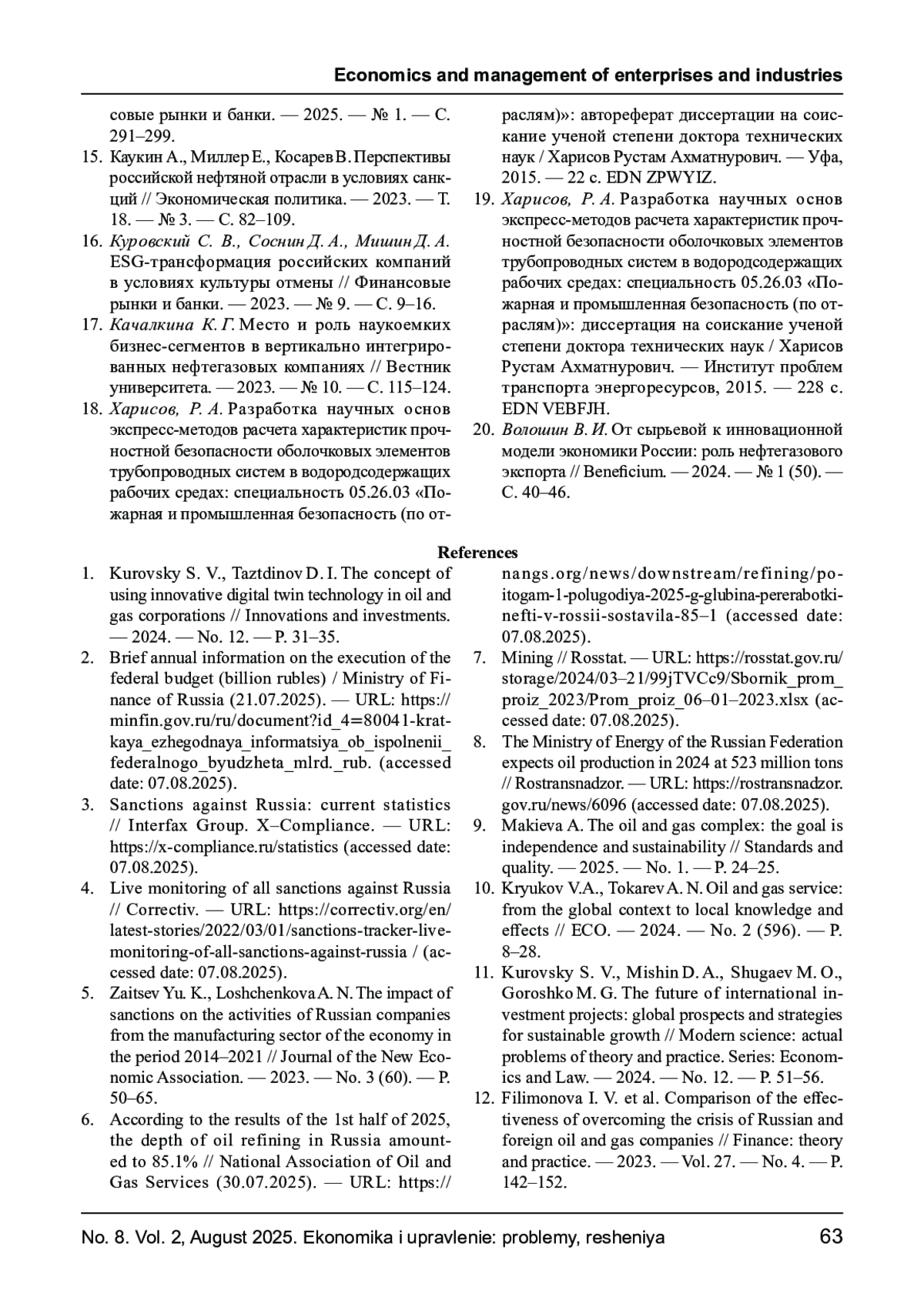9. Макиева А. Нефтегазовый комплекс: цель - независимость и устойчивость // Стандарты и качество. - 2025. - № 1. - С. 24-25. EDN: RAVHVK
